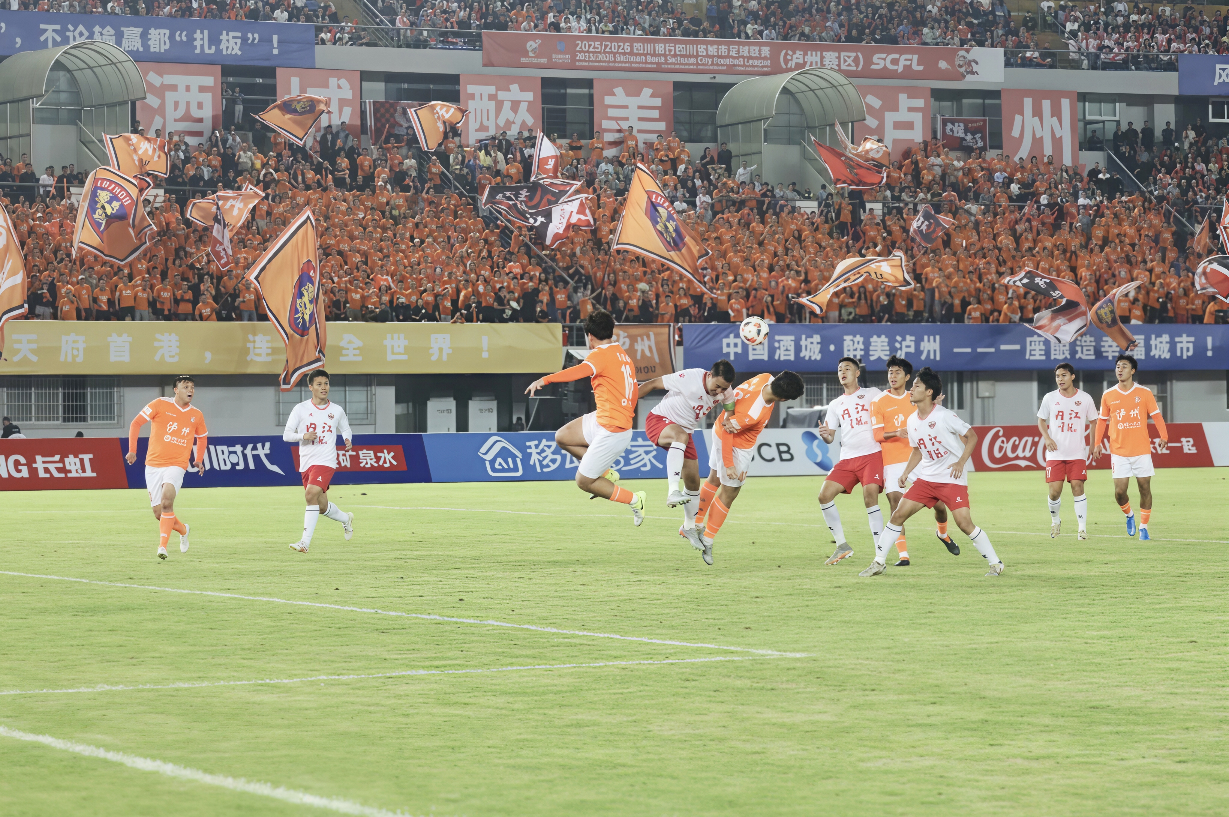 10月18日晚,2025/2026“川超”川南赛区,泸州第二场主场比赛战罢,泸州窖香队与内江重龍酒队2:2握手言和。