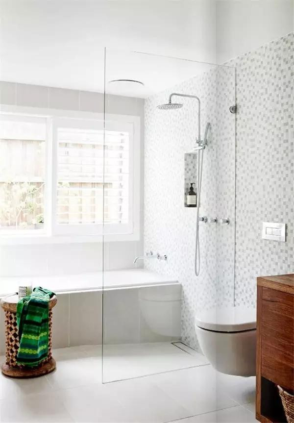 相比浴帘,浴帘门就实用多了,阻隔水汽效果很好,而且大多采用玻璃材质,款式也多,可以根据淋浴区的规划选择浴帘的类型。