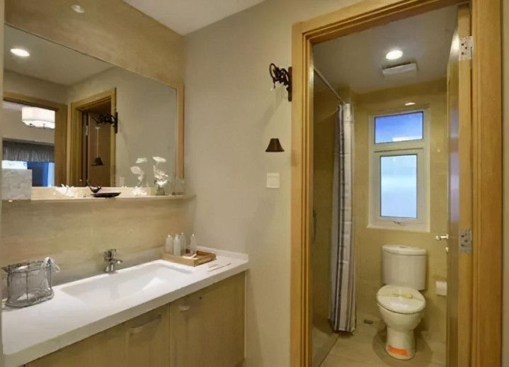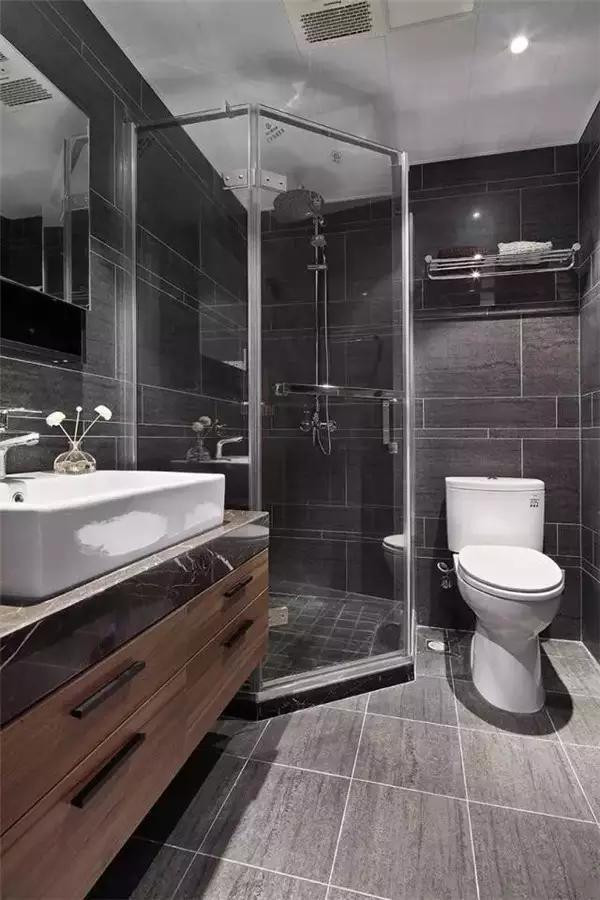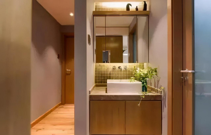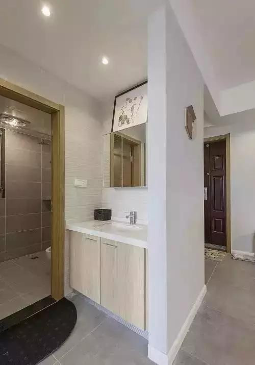 如果不喜欢这些做法,可以将洗手台和卫生间分开,把洗手台放在外面,这样就可以完全隔绝水汽的,不过这样就要求空间要足够大。
